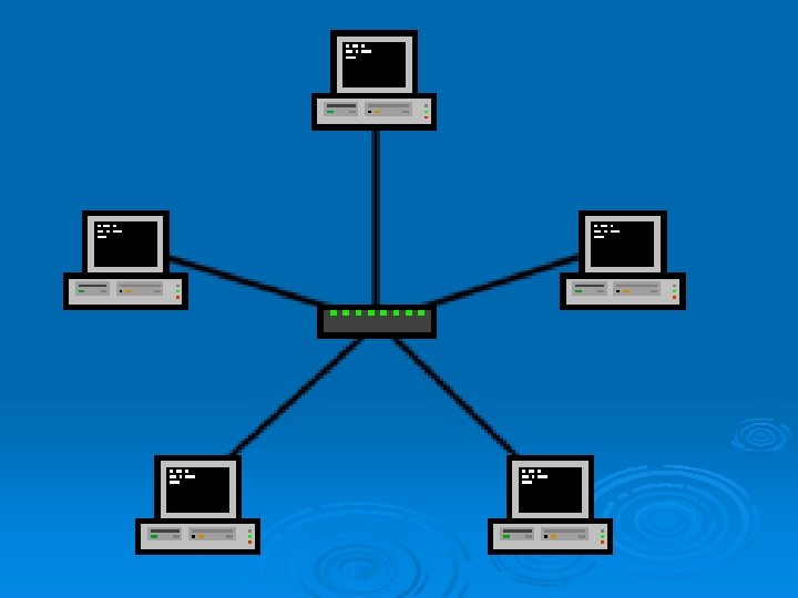 Ventajas y Desventajas de la T. en Estrella Ventajas: Ø Flexible para aumentar el número de equipos conectados a la red. Ø Si alguna de las computadoras falla el comportamiento de la red sigue sin problemas, sin embargo, si el problema se presenta en el controlador central se afecta toda la red. Ø El diagnóstico de problemas es simple, debido a que todos los equipos están conectados a un controlador central.