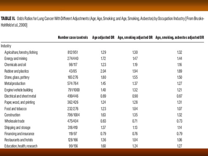 Confondimento: ruolo del caffè nel tumore del pancreas E+ E- Ca 450 50 Co 400 100 E+ RR=2. 3 E+ E- Ca 75 25 Co 170 80 RR=1. 4 NF E- Ca 375 25 Co 230 20 RR=1. 3 F