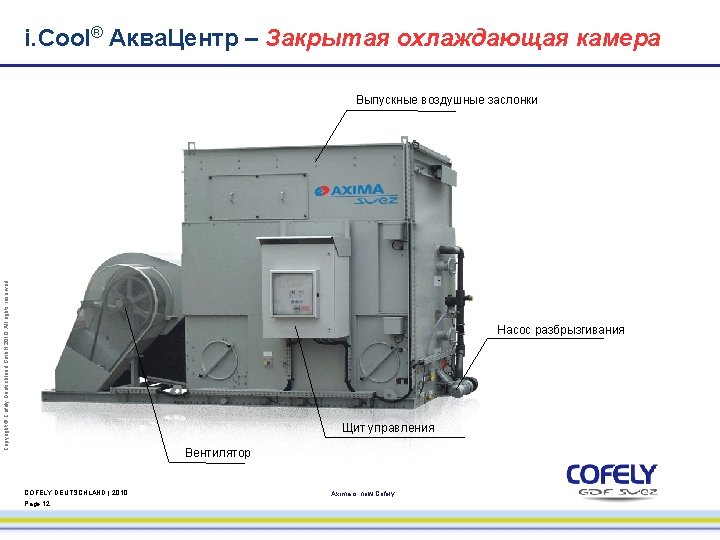 i. Cool® Aqua. Center – Central Unit Copyright © Cofely Deutschland Gmb. H 2010. All rights reserved. Touch Panel COFELY DEUTSCHLAND | 2010 Page 11 Axima is now Cofely