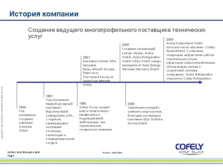 i. Cool® Aqua. Center – Advantages Possible average annual savings in running costs of up to 70 % ! Copyright © Cofely Deutschland Gmb. H 2010. All rights reserved. Annual savings in energy costs (example): COFELY DEUTSCHLAND | 2010 Page 10 Axima is now Cofely