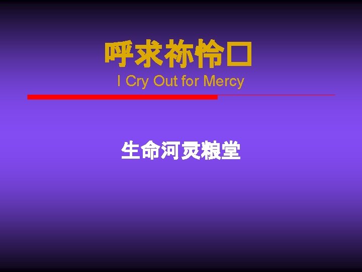 呼求祢怜� I Cry Out for Mercy 我呼求祢怜� I cry out for mercy 我呼求祢恩典 I cry out for grace, O Lord 1 -R. 3 生命河灵粮堂
