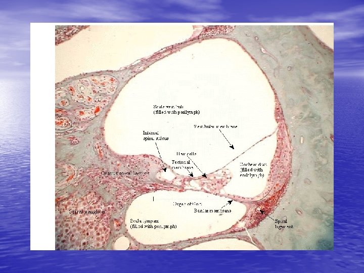 • 4. Movement of stapes at oval window transmits vibrations to perilymph in scala vestibuli