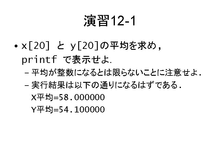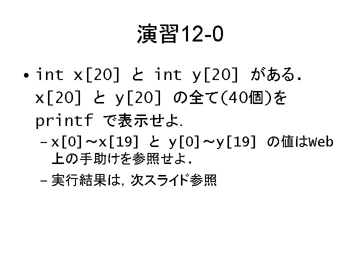 ![演習 12 -0の実行結果 x[0] = 49 x[1] = 92 x[2] = 67 x[3] = 演習 12 -0の実行結果 x[0] = 49 x[1] = 92 x[2] = 67 x[3] =](https://slidetodoc.com/presentation_image_h2/d6c05dbe132fe0cd73a48278a21e07c1/image-109.jpg)