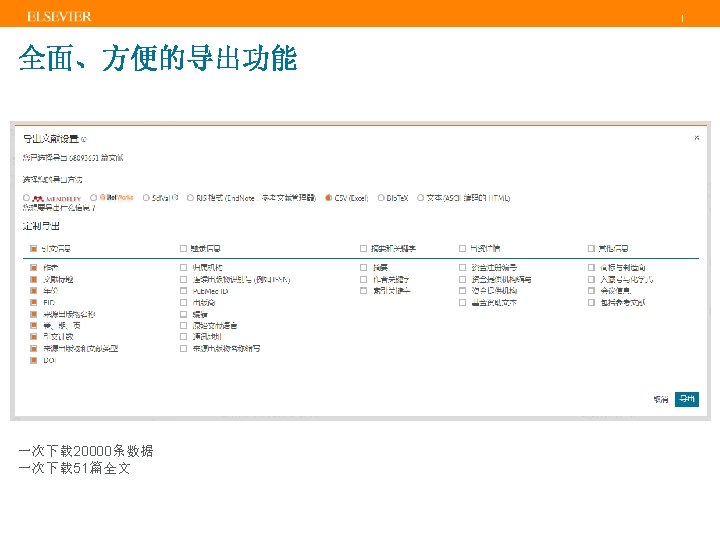 | 图书扩展计划 Program ran from 2013 – 2016 and covers scholarly books that represent fully-referenced, original research or literature reviews. Books coverage in “business as ususal” mode as of 2017 What Why Focus on Social Sciences and Arts & Humanities, but also Science, Technology & Medicine (STM) Improve completeness of coverage in Social Sciences and Arts & Humanities subject fields Coverage years back to 2005 (2003 for A&H) Enhance the discoverability of books in general 130, 000+ books added as part of the program with ~20 thousand each year going forward Measure impact through citations from and to books and between books and journals Book types in scope: Monographs, Edited Volumes, Major Reference Works, Graduate Level Text Books Increase accuracy to show the full scientific output in profiles for research assessments. Selection via publisher-based approach (all books “in scope” from selected publishers are included). More information on the publisher based book selection process (no individual book suggestions are considered) and the book suggestion form: https: //www. elsevier. com/solutions/scopus/content-policy-and-selection