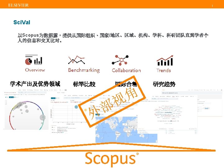 | 提纲 I. II. Scopus简介 • Citation Overview • Journal Metrics • Plum. X • Author Profile • Affiliation Profile Sci. Val简介 • Topics Prominence • 4个模块简介 III. 案例分析 IV. Q&A