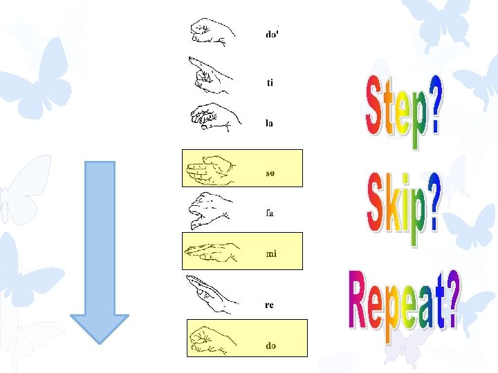 Learning Goal Student will understand that melody can move by step, skip or repeat. 4 Sings musically with correct hand signs. 3 Sings with correct hand signs every time. 2 Sings with correct hand signs when teacher helps. 1 Does not sing with hand signs. 0 Does not know what melody means.