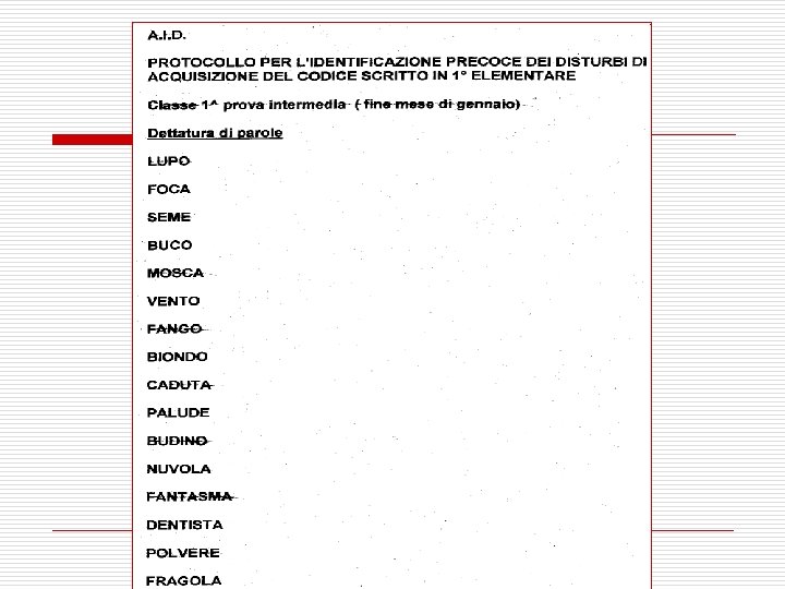 Su cosa lavorare nel recupero o o o Capacita’ percettivo-riproduttiva Capacità metafonologica Arricchimento lessicale Capacità di memorizzazione dei grafemi Sintesi fonemica e sillabica Accesso al significato