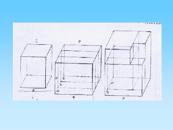 Le prime due equazioni furono risolte dal Cardano e dal Bombelli nel seguente modo: Ponendo l’equazione x 3+px=q si vuole determinare un cubo ed un parallelepipedo tali che: 1. L’altezza del parallelepipedo deve essere uguale al lato x del cubo; 2. Il parallelepipedo deve avere area di data base p; 3. La somma dei volumi del cubo e del parallelepipedo deve essere q; Si deve trovare un parallelepipedo retto che abbia per base un rettangolo di area p e di dimensioni u e 3 v tali che la loro differenza u-v sia uguale all’altezza x del parallelepipedo stesso. Così facendo possiamo decomporre il parallelepipedo in tre parallelepipedi uguali aventi le dimensioni u, v e x e questi disposti nel lato x del cubo si possono sommare con esso e formare un solido che Bombelli chiamava gnomoide ( la differenza di due cubi, di lati rispettivamente u e v).