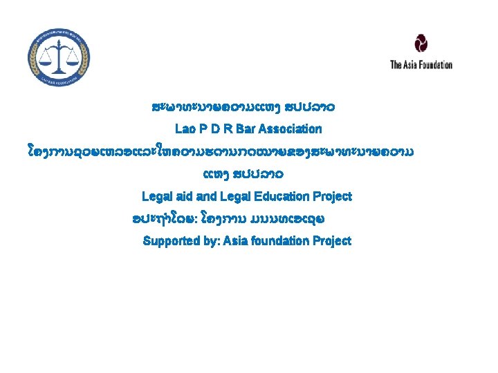 Thank you! Lao P D R Bar Association Tel/fax: 856 -21 -990445 -46, 856 -21 -353953 website: www. laobar. org Legal aid Clinic Northern Provinces Tel/Fax: 856 -81— 211548 Legal aid Clinic Southern Provinces Tel/Fax: 856 -31— 252 410