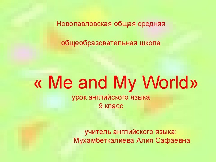 I Organization moment Greeting Teacher acquaints the pupils