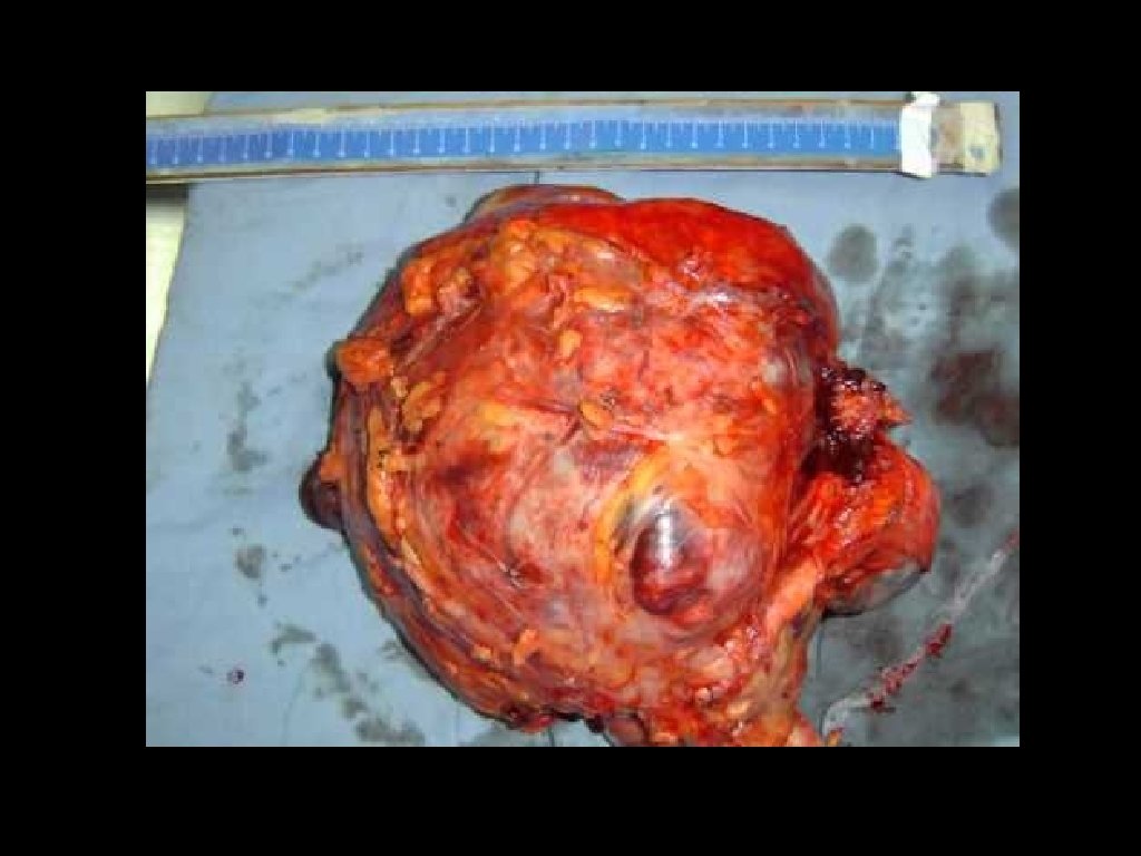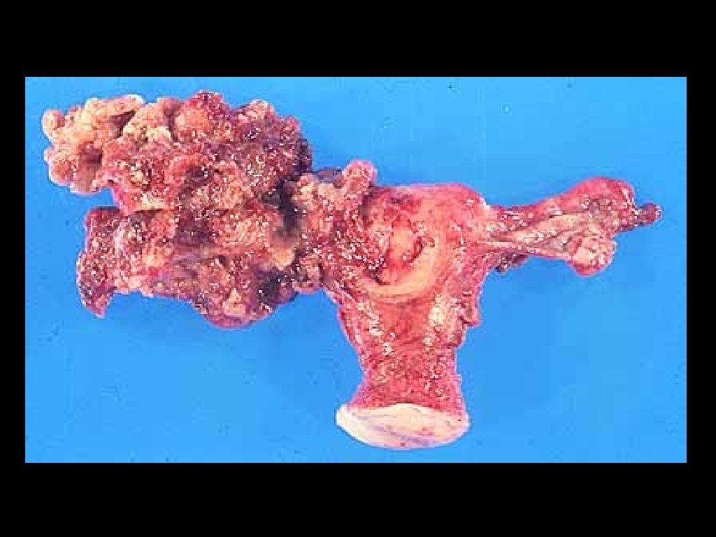 Cáncer de trompas • Representa el 0. 3% de cáncer ginecológicos • Signo clásico: “Hydrops tubae profluens” (descarga acuosa vaginal) • El 50% tendrá sangrado postmenopáusico. • La triada patognomónica, aunque infrecuente se caracteriza por dolor, metrorragia, y descarga acuosa • Manejo igual que en cáncer de ovario