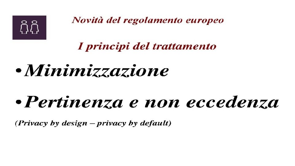Le maggiori novità del GDPR I. III. IV. V. VIII. IX. X. XIII. Nozione estensiva di dato personale Nozione giuridica di “base di liceità” del trattamento Centralità dell’informativa Principio di effettività del consenso Principio di minimizzazione dei dati Accountability e onere della prova La nuova e complessa figura del DPO / RPD Costruzione dell’organigramma privacy Registro dei trattamenti e analisi dei rischi Convivenza di più sistemi sanzionatori Privacy, Policy e controllo sui lavoratori Cultura della Privacy e formazione del personale Profili legali del “data breach”