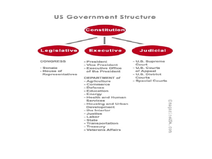 I tre poteri • Esecutivo (Presidente): potere di veto sulle leggi; nomina di giudici e di altre cariche pubbliche; trattati internazionali; Comandante in Capo delle forze militari; potere di concedere la grazia. • Legislativo (Congresso): Promulgazione di tutte le leggi federali; nomina tutte le corti inferiori alla Corte Suprema; superamento del veto presidenziale (coi 2/3 dei voti); impeachment del Presidente. • Giudiziario (Corte Suprema): interpretazione delle leggi e della Costituzionethe. Historically, the concept of Separation of Powers dates back as far as ancient Greece. The concepts were refined by contemporaries of the Framers, and those refinements influenced the establishment of the three branches in the Constitution.