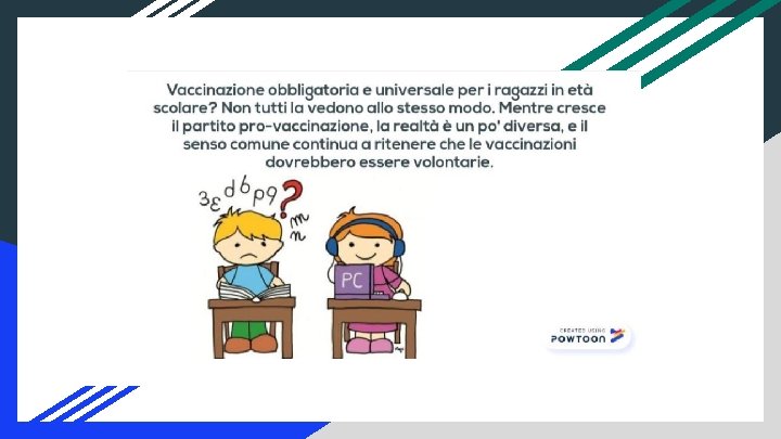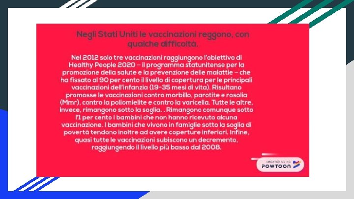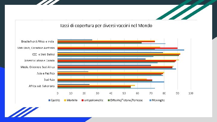 In Africa il rischio che un bambino muoia prima dei 5 anni è di 14 volte più alto che in Europa. Per quei bambini è sempre troppo semplice ammalarsi di morbillo o tubercolosi, per un sistema immunitario non in grado di combattere le infezioni. Secondo le stime dell’Oms, il morbillo causa nel mondo, ogni anno, 134 mila morti tra i bambini. Proprio la lotta al morbillo grazie ad una campagna di vaccinazioni ha fatto rilevare un risultato positivo tra il 2000 e il 2012: la mortalità per morbillo in Africa è calata dell’ 88%. A. Carmela- E. Mucedola- A. Iannone- J. De Pasquale- M. Mercaldi 3^I Dobbiamo impegnarci ad abbassare i costi dei vaccini, migliorare il trasporto, aumentare i punti per le vaccinazioni e investire sul personale sanitario per rafforzare il sistema salute. Gli operatori ogni giorno vanno di casa in casa per promuovere la vaccinazione e alzare le uniche barriere che ci interessa alzare. Quelle immunitarie, quelle della salute dell’Africa e del mondo tutto”.
