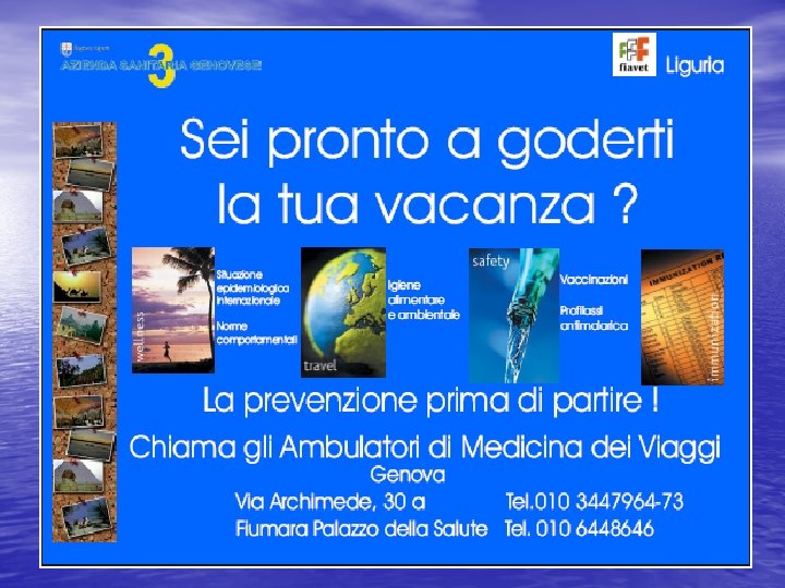 MEDICINA DEI VIAGGI protegge i viaggiatori dai rischi sanitari (infettivi e non) protegge la comunità dall’importazione delle infezioni