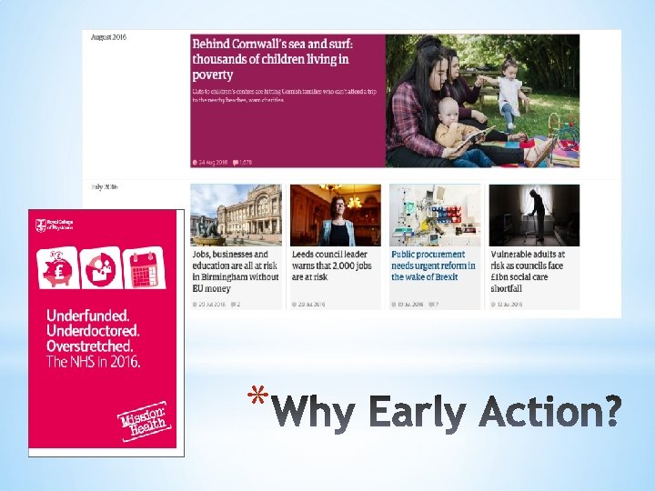 Place Based People Focused Prevention – recognising vulnerability earlier, putting interventions in place to prevent escalation to crisis – Lancashire Constabulary Early intervention involves identifying children and families that may be at risk of running into difficulties and providing timely and effective support – Early Intervention Foundation Any action which is deliberately forestalling a more serious problem – Early Action Task Force *