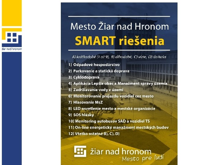 Žiar nad Hronom skúsenosti a vízie v SMART riešeniach Ing. Juraj Miškovič – prednosta MsÚ