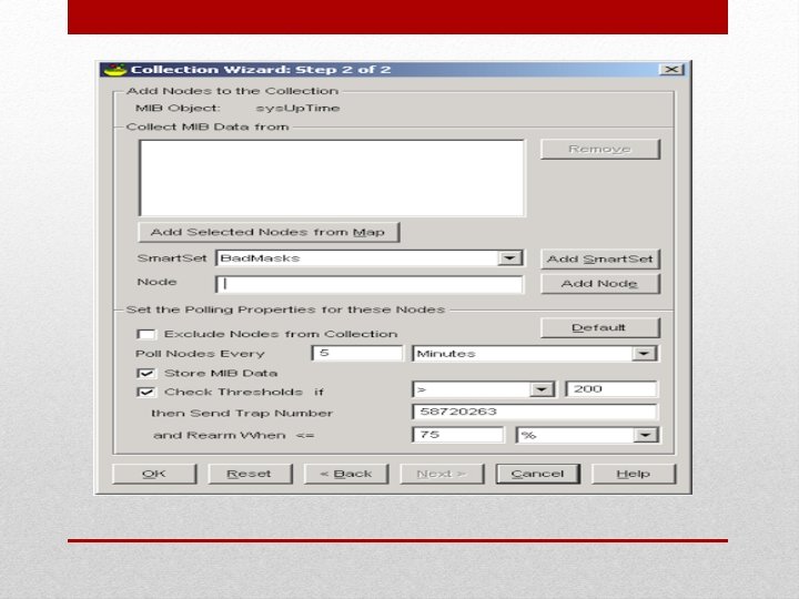 Traps and Events o Net. View receives information about changes that affect devices from traps and events generated by agents that monitor the devices. o There are 2 type of traps: Unsolicited: traps that are sent from remote network devices to the Net. View server. Internal: traps which are internal to Net. View and these are known as events.