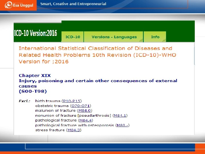 ICD 10 Bab 19 ( Cedera / Injury) Pertemuan 1 Deasy Rosmala Dewi, MKes Prodi RMIK, Fakultas Ilmu-ilmu Kesehatan