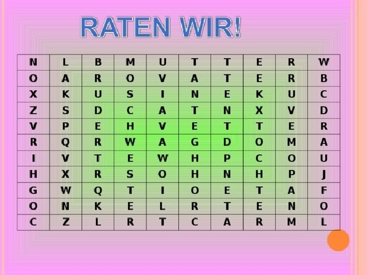 Рассказ о себе Ich heiße…. Ich wohne in Saransk. Ich bin. . Jahre. Meine Familie ist …(groß, klein) Mein Vater heißt …. . Er ist ___ Jahre alt. Mein Vater ist……………. . von Beruf Meine Mutter heißt. …. Sie ist ___ Jahre alt. Meine Mutter ist …………… von Beruf Mein Bruder (имя) ist ___ Jahre alt. Die Schwester (имя) ist ___ Jahre alt. Meine Oma heißt. …. Sie ist ___ Jahre alt. Mein Opa heißt …. . Er ist ___ Jahre alt. Ich liebe meine Familie!