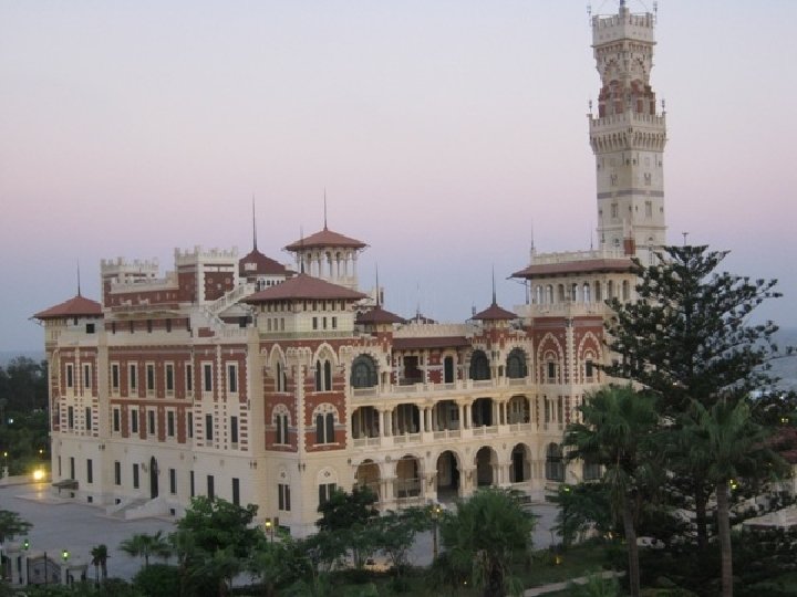 Le palais El Haramlek Dans lequel descendaient les femmes de la cout royale Il fut bâti dans un grand jardin très bien organise et donne sur une vue splendide d'un des principaux golfs d'Alexandrie le golf de Montazah Après la révolution de 1952 le premier étage de ce palais a été transformé en casino mondial mais le second et troisième étage en hôtel de cinq étoiles Le Palais Salamlek Il a été construit pour la résidence des courtisans du roi, On y trouve les belles toiles , de beaux consols. de superbes lustres et les suites royales qui renferment les souvenirs de la famille royale De nos jours il a été transformé en hôtel de luxe qui comprend des chambres qui varient entre suites simples et doubles, Comme on y trouve aussi des plages privées , un centre d'affaires , des salles de réunions , un parking , de vastes jardins , des magasins pour du shopping et les bazars, ainsi que des chambres varient entre suites simples et doubles, qui varier aussi dans leur prix