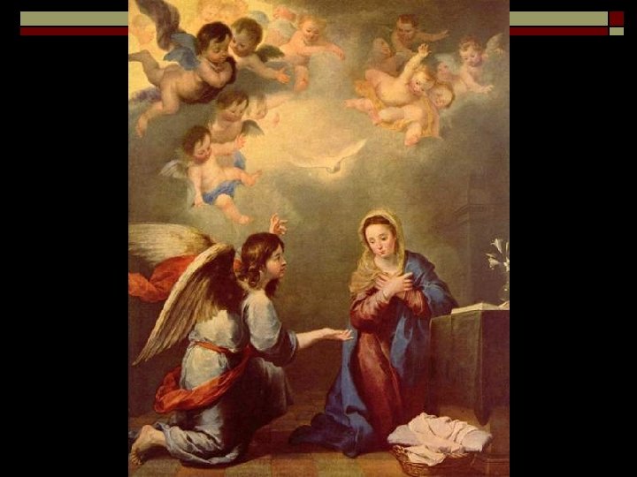 Antes de Jesús o Concepción milagrosa de María n o o o Abrazo en la Puerta Dorada de Jerusalén de San Joaquín y Santa Ana Nacimiento de María Presentación en el Templo Desposorios Anunciación: “Fiat” Visitación a su prima Isabel Tres generaciones