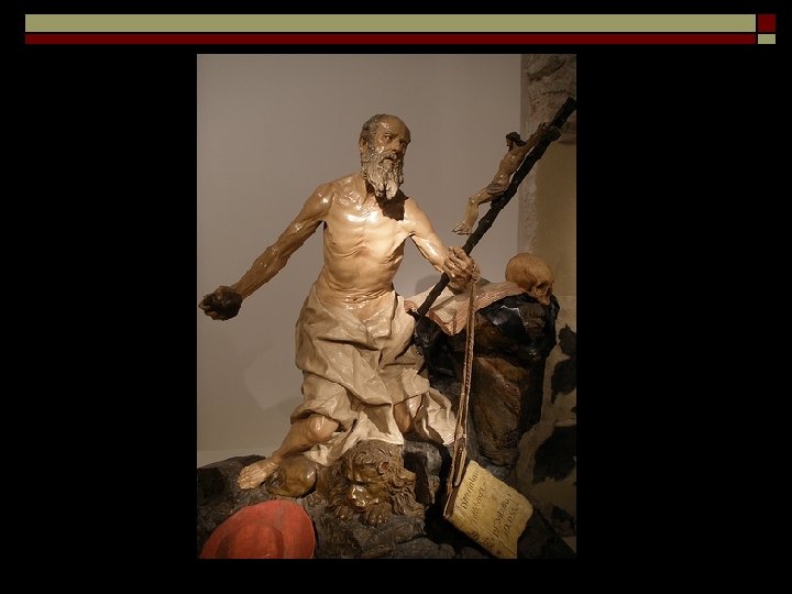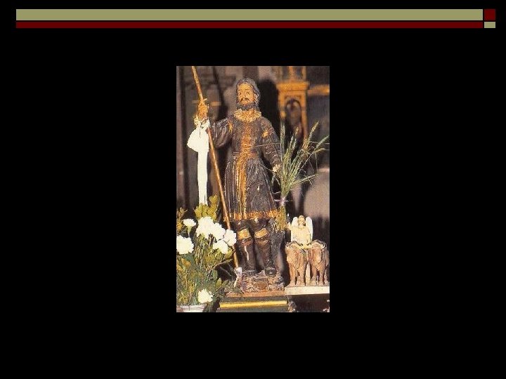 Los santos o Hagiografía: la vida ejemplar de los santos n n o Flos sanctorum: el santo de cada día Novenas, triduos… Piedad, patronazgo, localismo y santos n La representación de los santos o o o Escultura Pintura Grabado, estampas