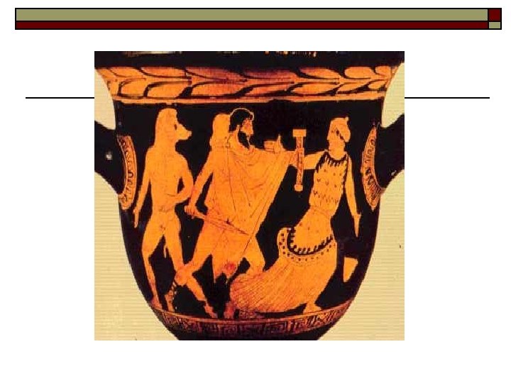 Los autores trágicos y el recurso a la mitología o Eurípides (480 -406 a. C) n n n n Agnosticismo El individuo puede vencer a su destino El patetismo se impone a las convicciones religiosas Hércules furioso Ifigenia en Taúride Electra Orestes Las bacantes