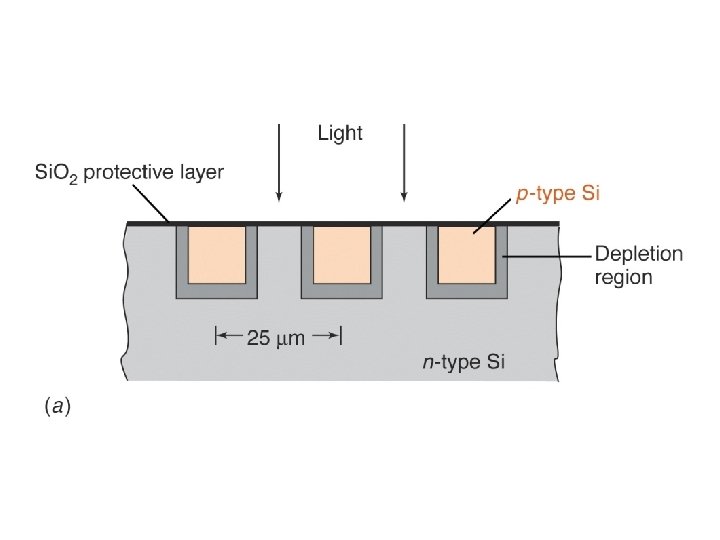 • When radiation hits the depletion layer, holes and electrons are formed and a current flows. • The current is proportional to P (power of incident radiation)