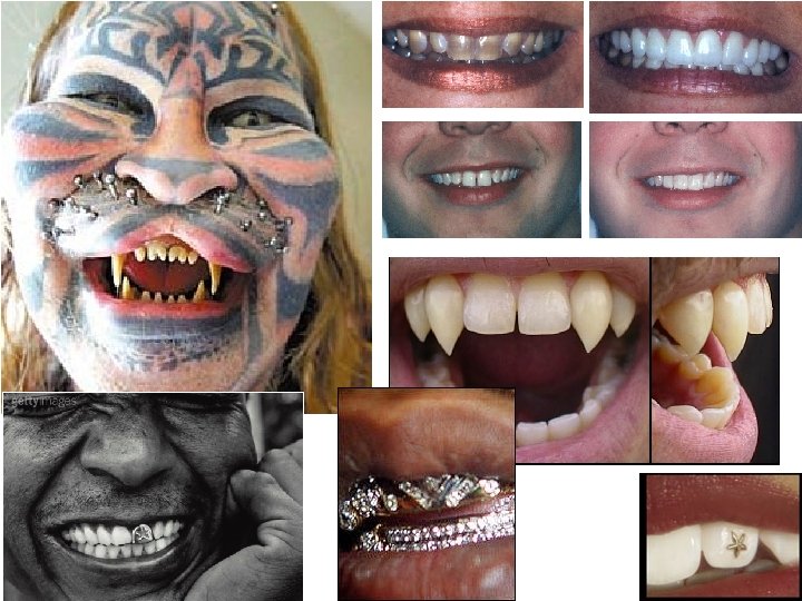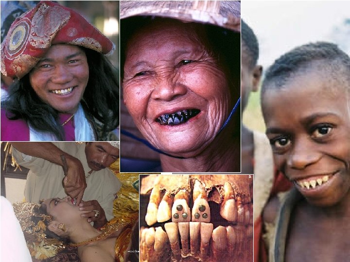 Cultural modification……. geographic origin information 1. Teeth avulsion 2. Teeth position modification 3. Enamel notches (pointing) or grooves 4. Sharpening 5. Horizontal filing (“tooth amputation”) 6. Occlusal profile modification 7. Teeth color modification 8. Jewel setting