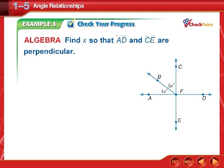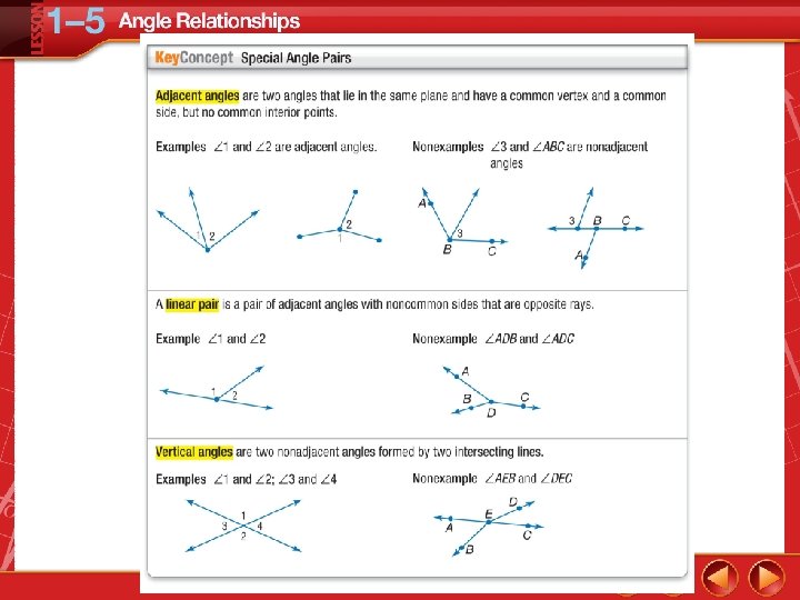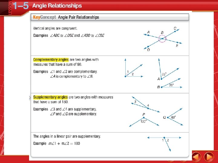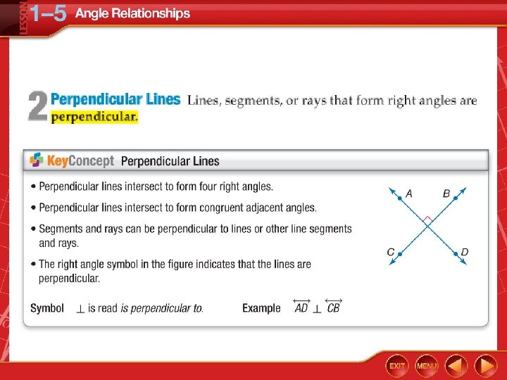 • Identify and use special pairs of angles. • Identify perpendicular lines.