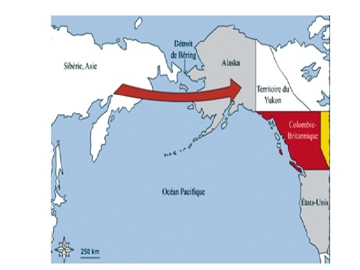 • 13 500 à 50 000 ans • Séparent la Sibérie (Asie) de l’Alaska (Amérique du Nord) Détroit de Béring (soit la glace ou pas beaucoup d’eau)