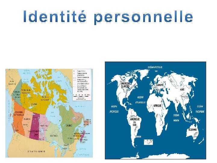 Définitions Identité personnelle: Dépend de plusieurs éléments : sentiments, famille, amis, sexe, culture, traditions et activités. Identité canadienne: Comme l’identité personnelle, il y a plusieurs éléments : le lieu tu habites, le climat et paysage, la communauté ou province, la langue, ton histoire personnelle et le gouvernement.