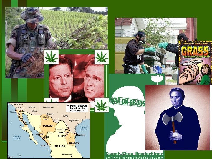 Drug War • Criminalization • Addicts unwilling to approach public health establishment for help • • • Border interdiction Attack on source countries Prison crowding/increased capacity Massive expense of policy Economic drain on economy—overseas payment Massive profitability Subsidy for organized crime Violence/murder Significant reduction in use?