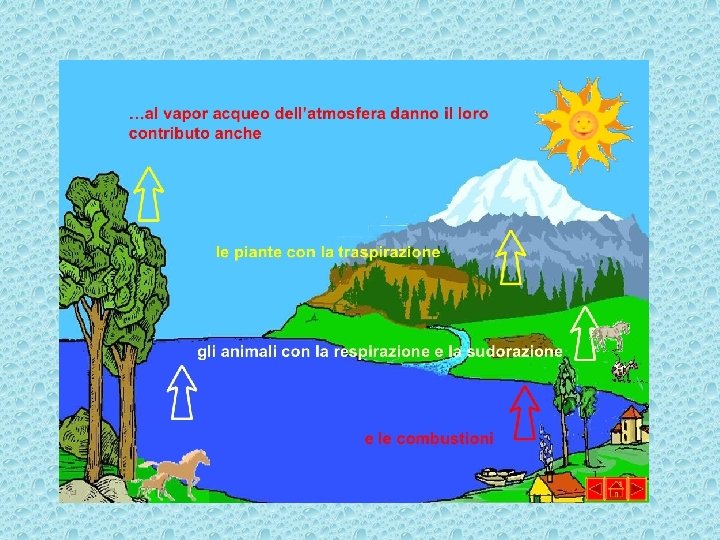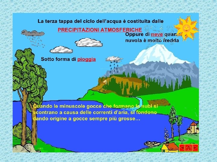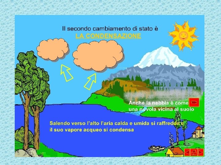 Il ciclo dell’acqua si realizza attraverso il passaggio delle molecole d’acqua da uno stato di aggregazione all’altro.
