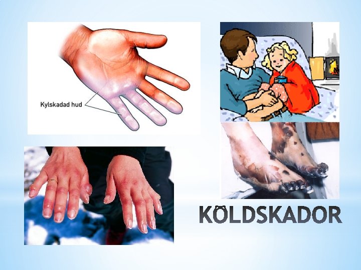 * 37 grader: normal kroppstemperatur * 35 grader: frossa, dålig motorik och försämrat omdöme * 33 grader: kraftig frossa, händerna är oanvändbara och förvirring * 30 grader: avtagande frossa, kan inte gå och kraftigt förvirrad * 30 -28 grader: långsam puls och andning samt risk för hjärtflimmer * 27 -25 grader: medvetslöshet och risk att dö