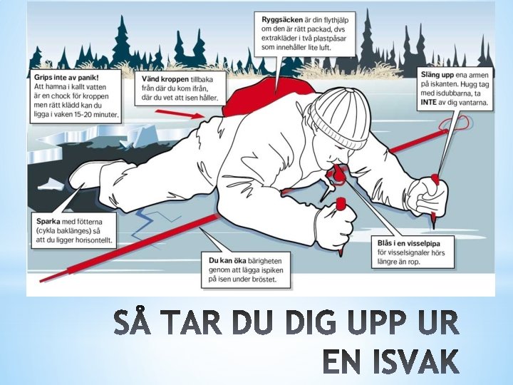 * Myndigheten för säkerhet och beredskap http: //www. dinsakerhet. se/Fritid--resor/Sno-och-is/ och https: //msb. se/skola * Svenska Livräddningssällskapet, SNOFED, Friluftsfrämjandet, Sjöräddningssällskapet, Skridskonätet och Sportfiskarna http: //www. issakerhet. se/ * Lifesaving. se http: //www. proteamonline. se/customers/content. asp? Id=1439&Co ntent. Id=28228 * SMHI vindkyletabell http: //www. smhi. se/kunskapsbanken/meteorologi/vindenskyleffekt-1. 259 * Försvarsmakten (1997). Vintersoldat. Försvarsmakten & Sörman Information och Media. Finns online på http: //www. scribd. com/doc/95790669/vintersoldat * Situationsanpassad isbedömning, Johan Porsby http: //www. thinkice. com/glaciology/sv/situationis. htm