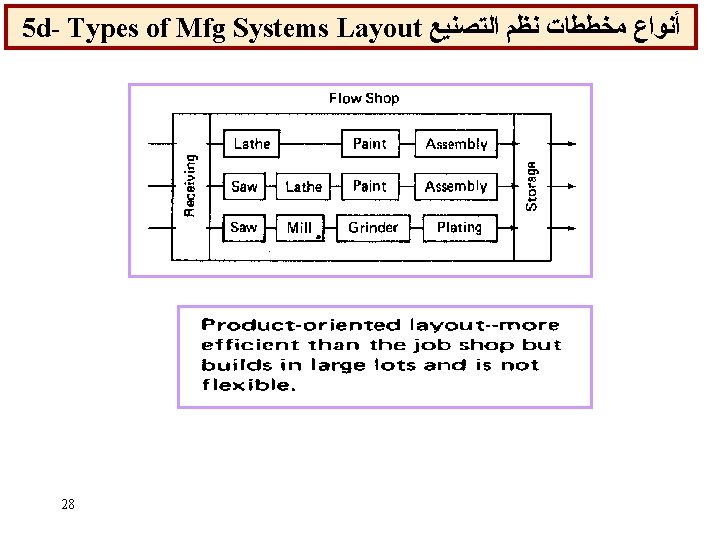 5 c- Types of Mfg Systems Layout ﺃﻨﻮﺍﻉ ﻣﺨﻄﻄﺎﺕ ﻧﻈﻢ ﺍﻟﺘﺼﻨﻴﻊ Process Layout Group Technology Layout 27