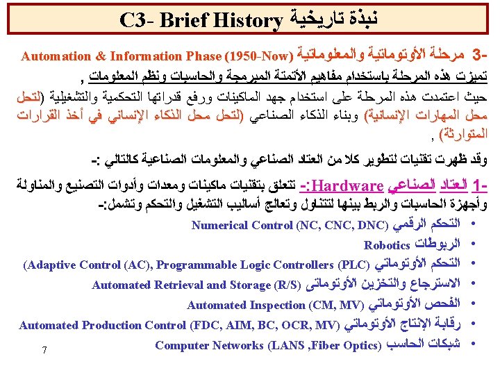 6 e- Manufacturing System classification ﺗﺼﻨﻴﻒ ﻧﻈﺎﻡ ﺍﻟﺘﺼﻨﻴﻊ 36