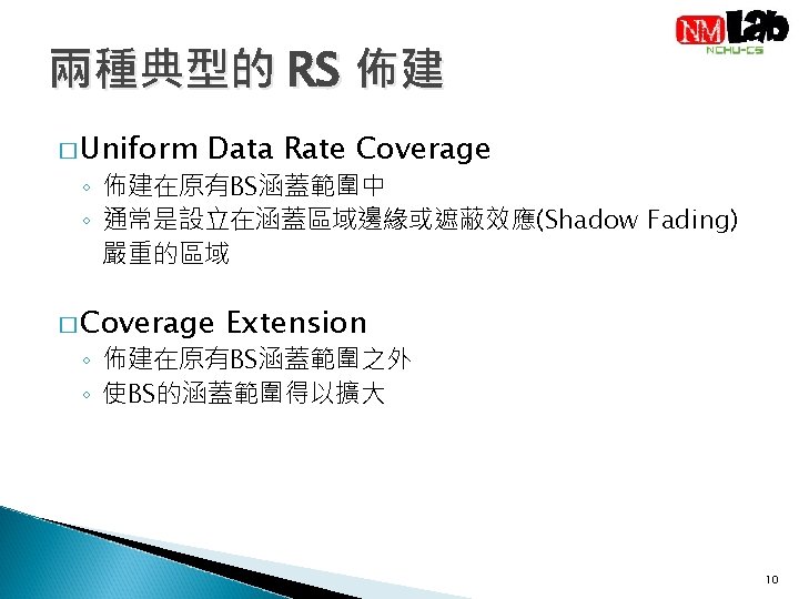 LOS Transmission Line-Of-Sight Transmission => Better signal quality, higher rate. 9