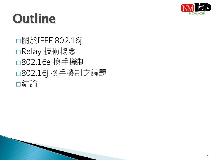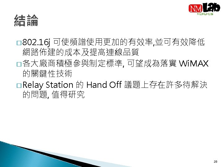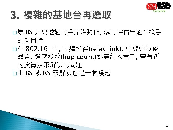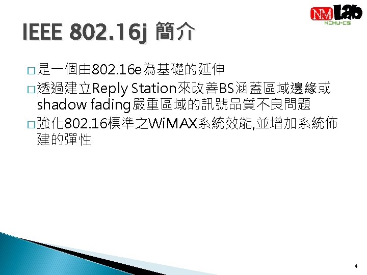 802. 16 e 換手機制 IEEE 802. 16 j 簡介 12