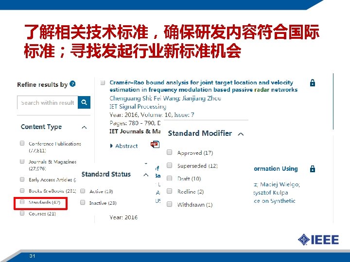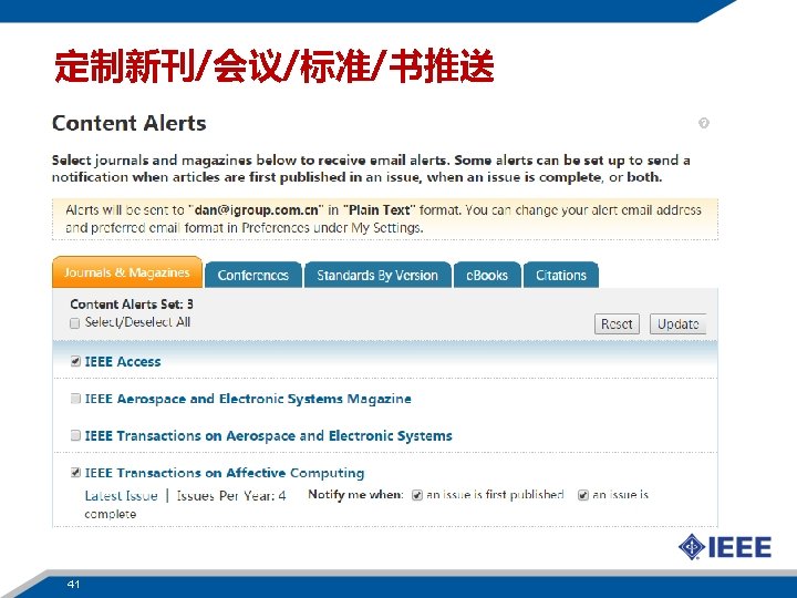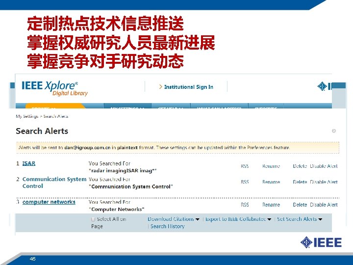 有问题请随时联系我们! 李箐 IEEE中国区资讯经理 li. q@ieee. org 陈伟 i. Group中国 IEEE产品培训主管 chester@igroup. com. cn iel@igroup. com. cn