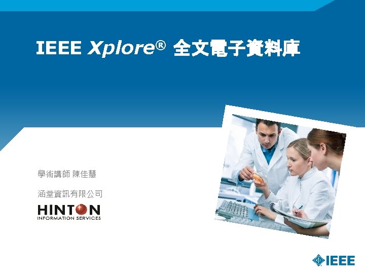Platform Enhancements 了解更多 IEEE Xplore® 運用 觀看線上教學影片: www. ieee. org/go/clientservices 線上申請LIVE教育訓練: www. ieee. org/go/training 體驗資料庫,請至: www. ieee. org/ieeexplore Contact us at service@hintoninfo. com 基泰國際有限公司 學術部門 The Best Professional Development Activity Winner – - IEEE University of Southampton Student Branch (STB 09551) , UK&RI Section