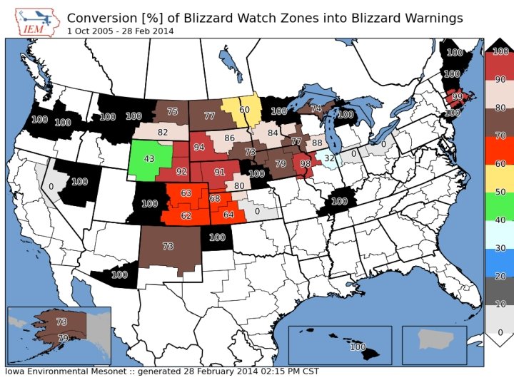 10% of Blizzard Warnings are dumped by half way through warning Less than half make it to expiration 5% last double initial issuance