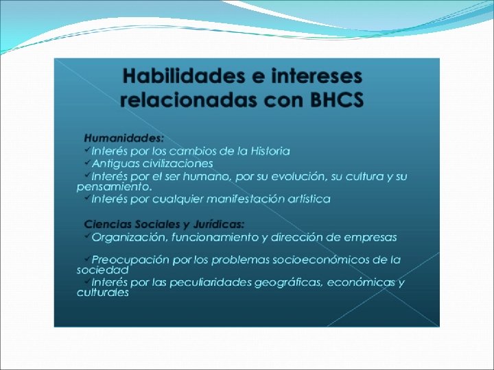 Toma de decisiones Para elegir bien Factores externos Aspectos personales 1. 2. 3. 4. 5. Habilidades, capacidades y aptitudes: ¿qué se me da bien? Personalidad: ¿cómo soy? Valores: ¿qué espero de la vida? Motivación: ¿por qué lo hago? Intereses profesionales: ¿qué me gusta? Decisión a) Formación e información: ¿conozco las opciones que hay? b) Conocimiento del mundo del trabajo: ¿sé cuáles son las salidas profesionales? c) Presiones sociales: ¿qué esperan los demás de mí? , ¿me dejo influenciar? d) Asesoramiento externo y profesional: ¿necesito ayuda?