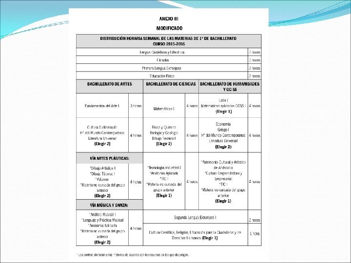 CARACTERÍSTICAS PRINCIPALES DEL BACHILLERATO Duración de 2 cursos (permanencia 4 años como máximo). Preparación para Estudios Superiores. Madurez académica y personal. Etapa no obligatoria. Especialización.