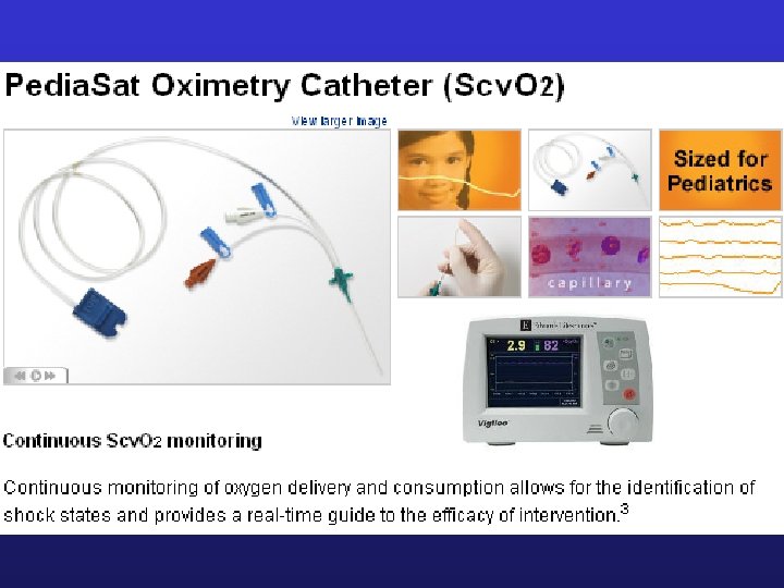 Ñoä bão hoøa oxy TMTT § Ñoä bão hoøa oxy TMTT (Central Venous Oxygen Saturation: Scv. O 2) # ñoä baûo hoøa oxy TM troän ( Mixed Venous Oxygen Saturation: Smv. O 2 ) - 2 3% § Phaûn ánh: sử dụng oxy mô § TD ñaùp öùng ÑT soác § Ra soác, DT toát khi Scv. O 2 > 70%