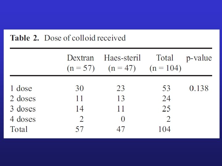 Sử dụng dung dịch HAES steril Biến chứng có thể. Suy hô hấp. Xuất huyết tiêu hóa Tác dụng phụ: . Run tiêm truyền/sốc PV Sử dụng lợi tiểu Kết quả: sống 4 (13. 3%) 2 (6. 6%) 0 10 (33%) 30 (100%) Bridget [5] run tiêm truyền: Dextran 7 -9%, HES: 0. 8%
