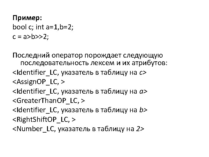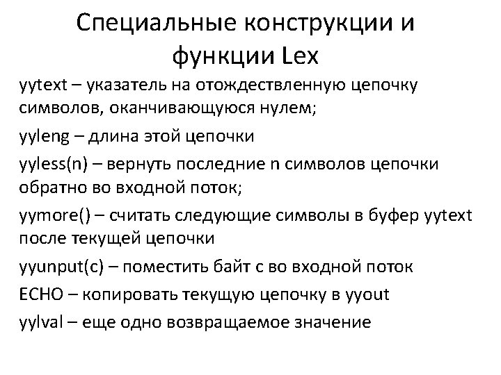 ![": =" return(ASSIGNMENT); '({NQUOTE}|'')+' return(CHARACTER_STRING); ": " return(COLON); ", " return(COMMA); [0 -9]+ return(DIGSEQ); ": =" return(ASSIGNMENT); '({NQUOTE}|'')+' return(CHARACTER_STRING); ": " return(COLON); ", " return(COMMA); [0 -9]+ return(DIGSEQ);](https://slidetodoc.com/presentation_image_h2/226740211d76a74b8a916775e4113358/image-15.jpg)