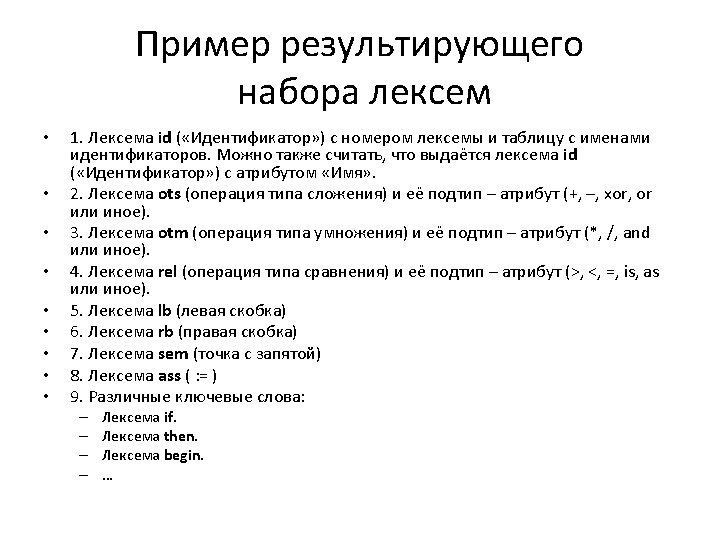 Пример обработки входного потока if distance >= speed * (endtime-starttime) then distance : = distance – delta; if id rel id otm lb id ots id rb then id ass id ots id sem